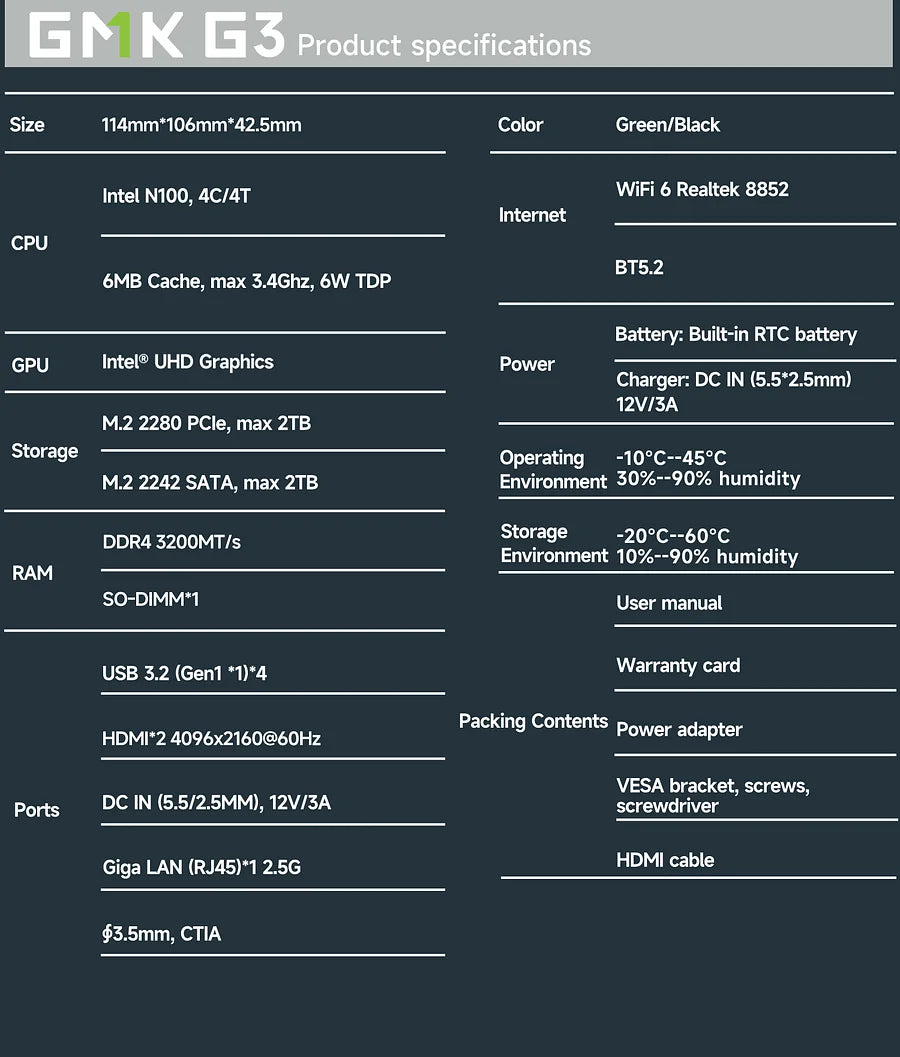 Il N100 di 12a generazione (fino a 3.4GHz) consuma il 30% in meno rispetto al N95, ideale per compiti 24/7 come NAS o segnaletica digitale.