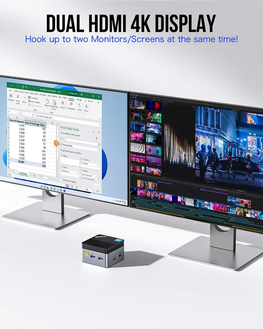 Alimentato da processori all'avanguardia per la massima potenza di calcolo. I nostri mini-PC offrono prestazioni a livello desktop in un formato compatto, perfetto per lavoro e intrattenimento.