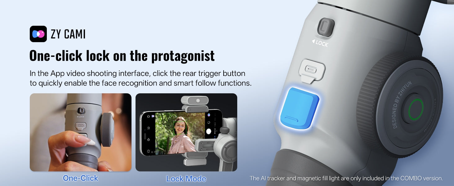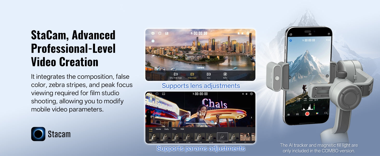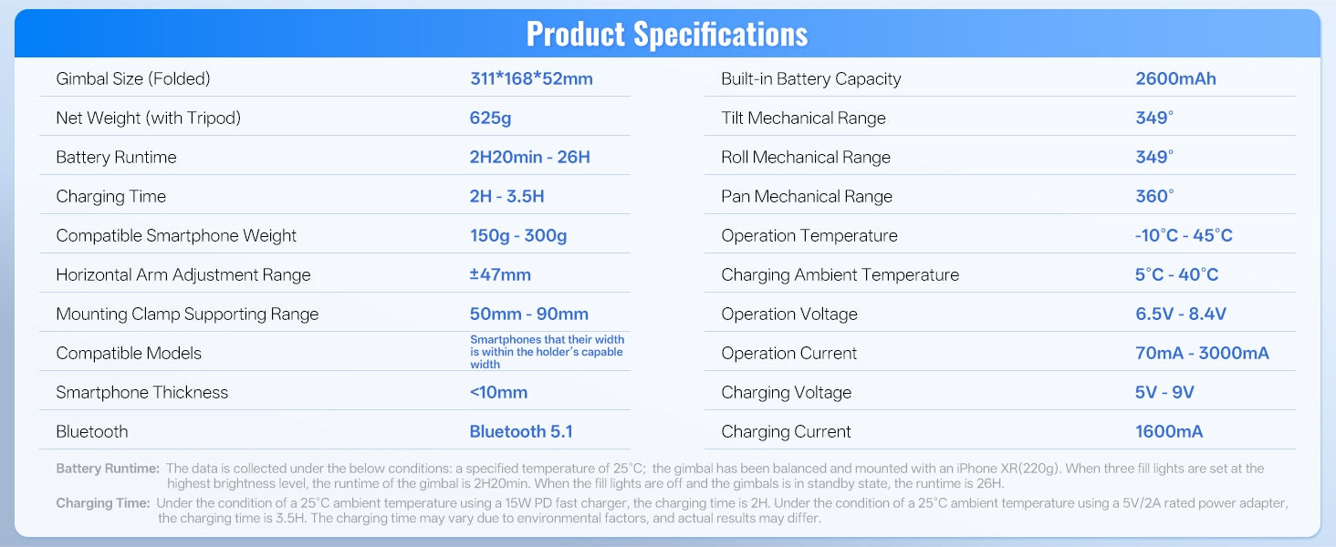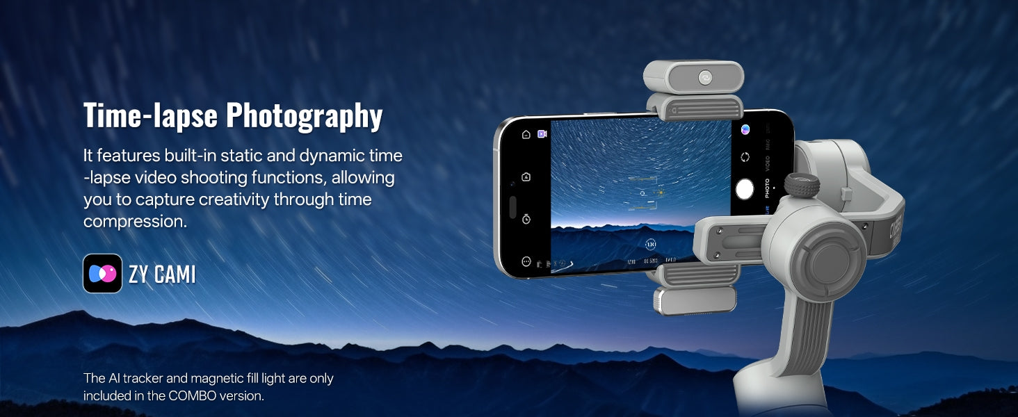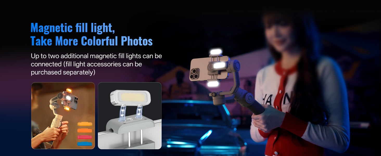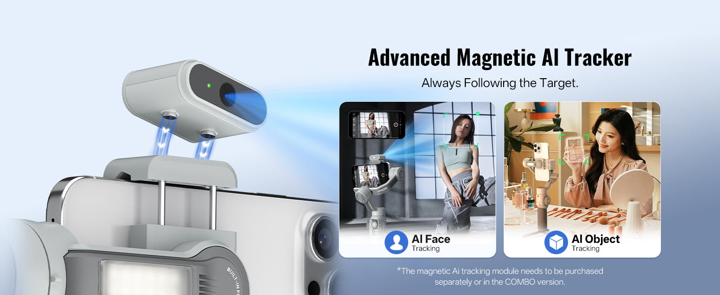 Design cinematografico a 3 assi elimina vibrazioni. 5 modalità (Pan-Follow, POV, Vortex) per vlog in movimento e azione – compatibile con iPhone 15/14, Samsung S23 e Pixel 8 (fino a 300g).