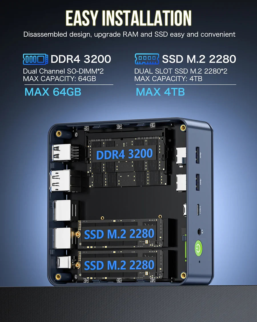 Alimentato da processori all'avanguardia per la massima potenza di calcolo. I nostri mini-PC offrono prestazioni a livello desktop in un formato compatto, perfetto per lavoro e intrattenimento.
