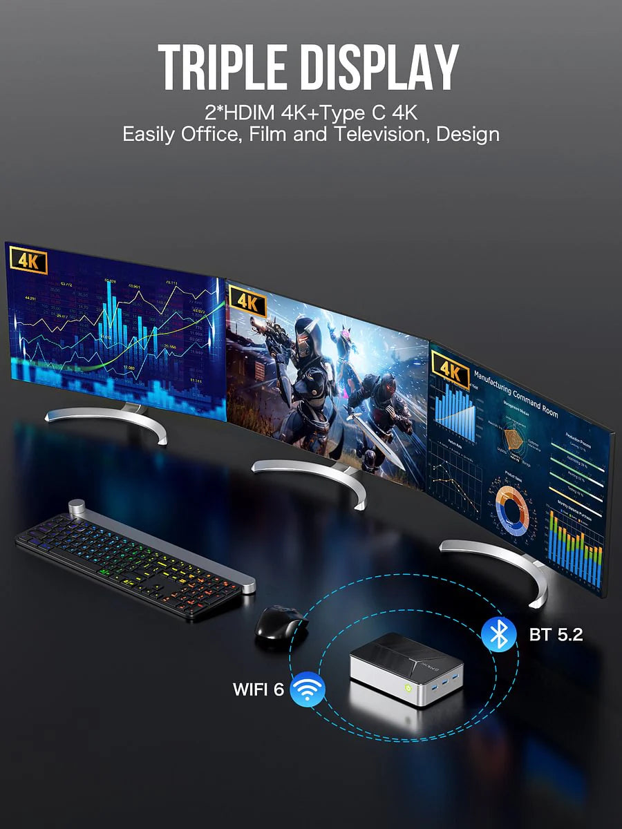 Alimentato da processori all'avanguardia per la massima potenza di calcolo. I nostri mini-PC offrono prestazioni a livello desktop in un formato compatto, perfetto per lavoro e intrattenimento.