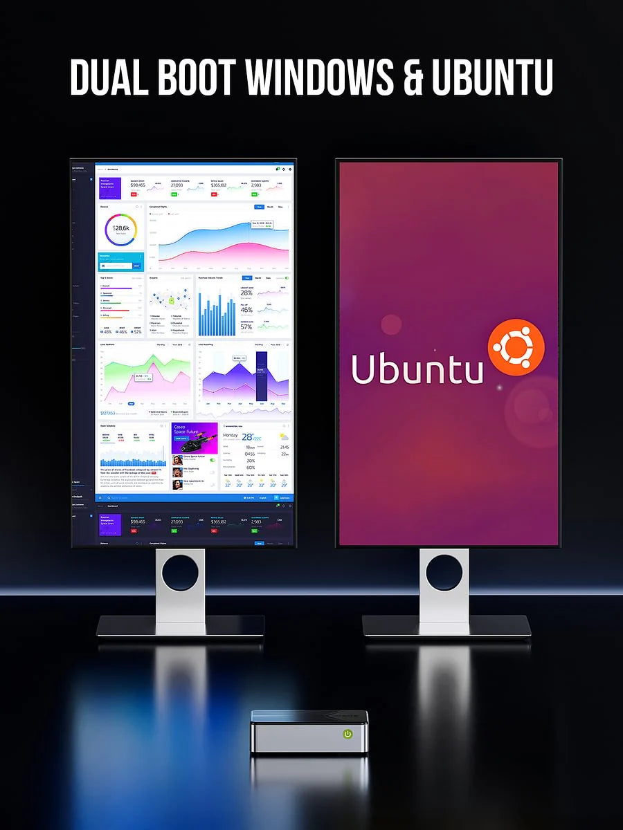 (5) Dual OS e Connettività di Nuova Generazione: Windows 11 + Ubuntu preinstallati, Doppio LAN 2.5G, Wi-Fi 6, Bluetooth 5.2, perfetto per P2P e laboratori domestici.