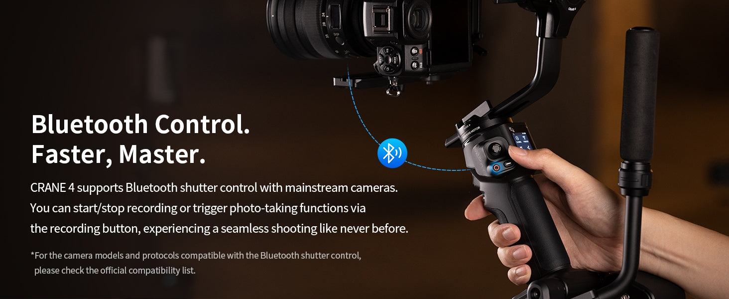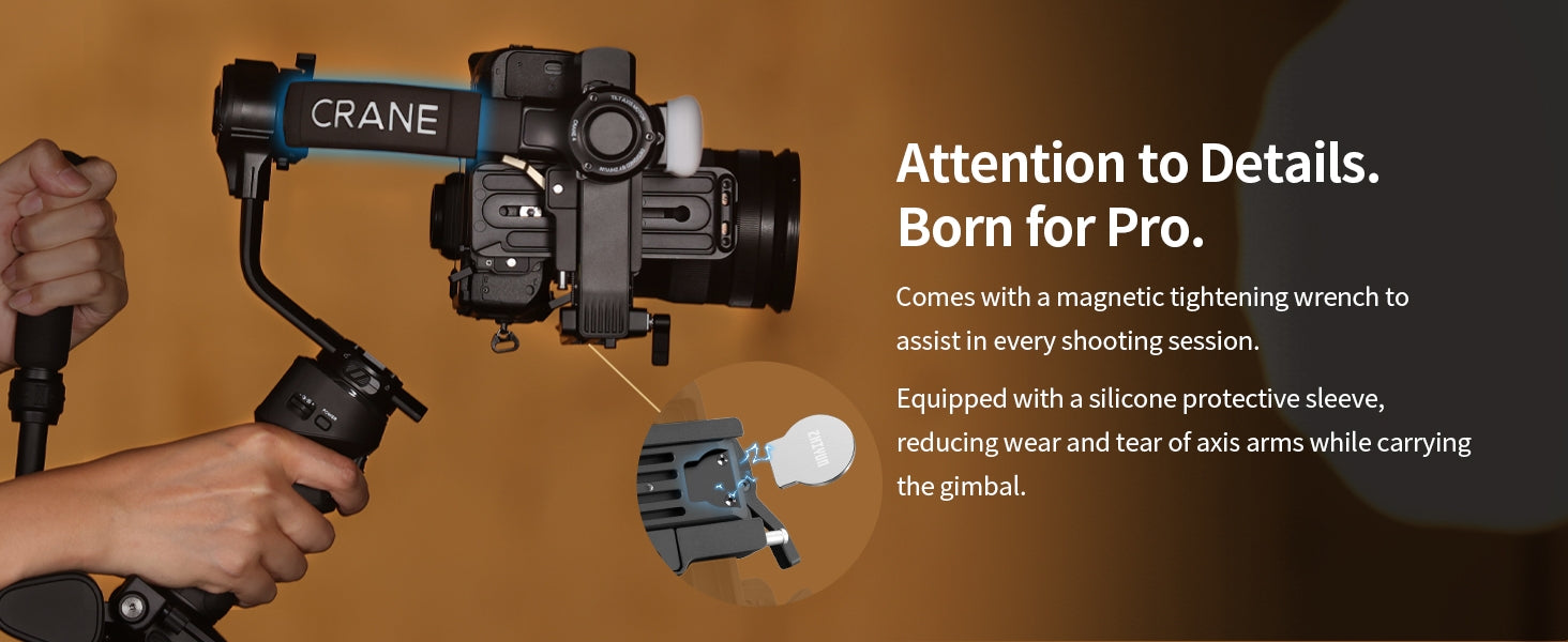 Grazie alla lunghezza del braccio più lunga, ai motori più potenti e alla piastra di rilascio rapido estesa, il CRANE 4 accoglie senza sforzo e in tutta sicurezza fotocamere DSLR full-frame e cineprese compatte. Libera tutta la potenza senza sacrificare la portabilità.
