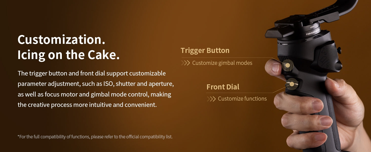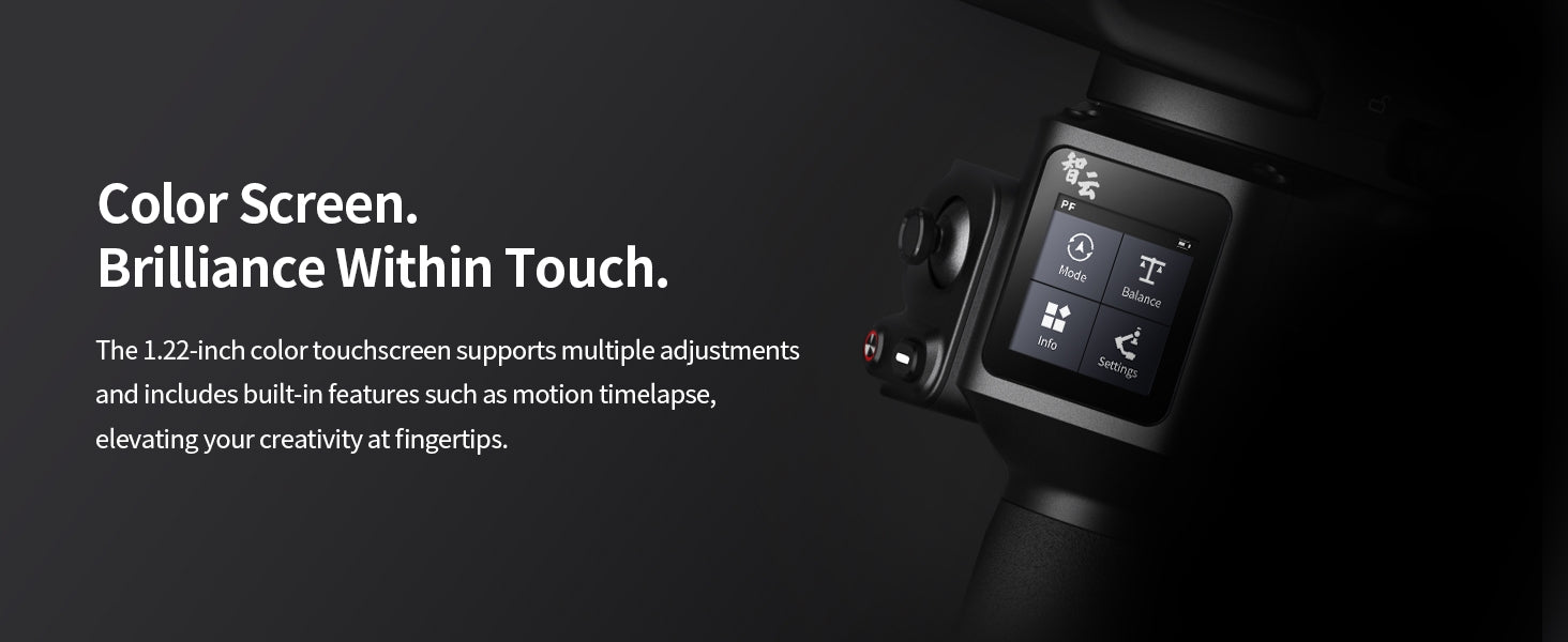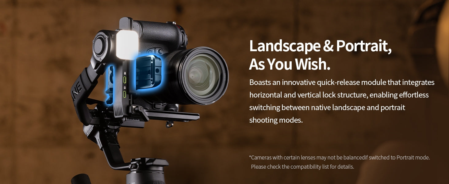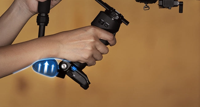 L'impugnatura Sling estensibile può essere regolata all'asse centrale del gimbal, consentendo un facile passaggio tra la modalità Sling e la modalità a due mani.