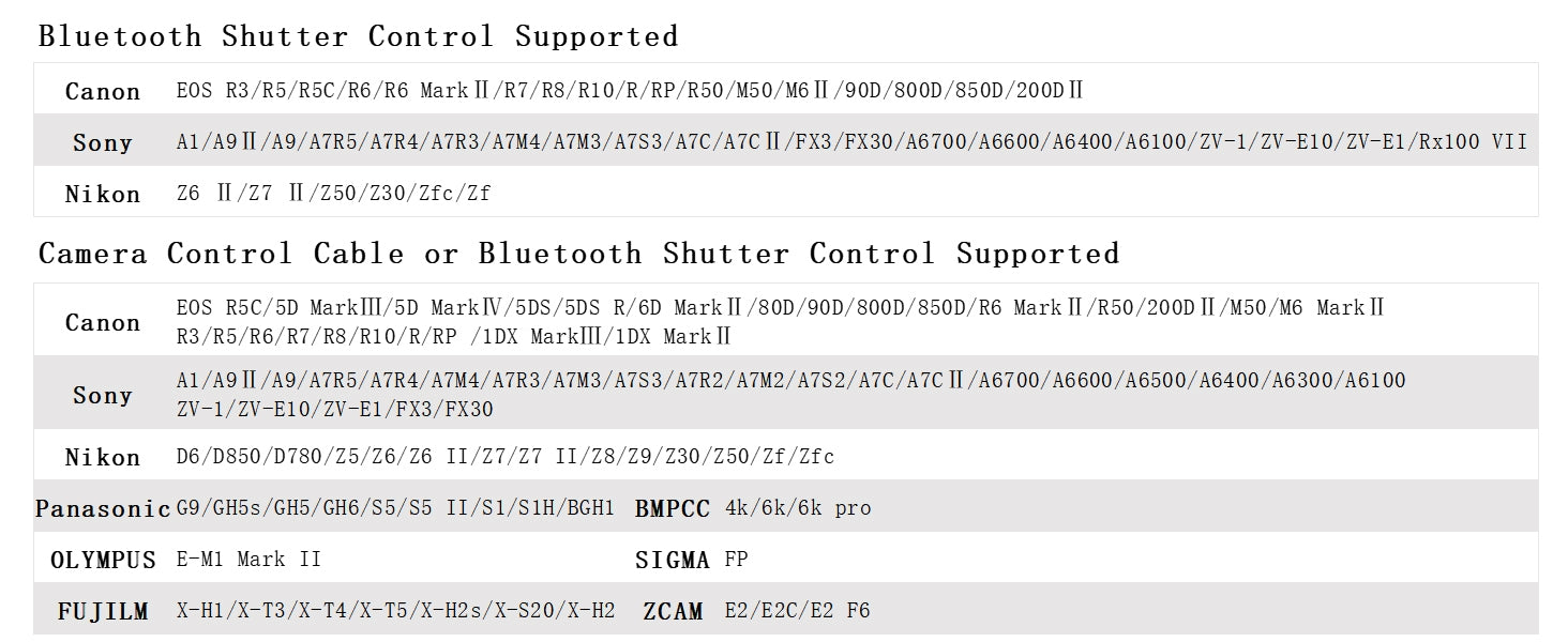 Controllo wireless impostazioni. Supporta Nikon Z8, Panasonic S5II.
