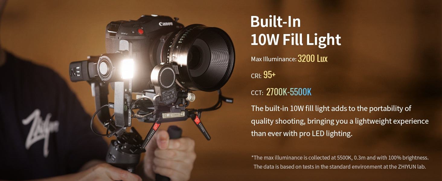 LED regolabile (2700K-5500K). Prestazioni superiori a DJI RS3.