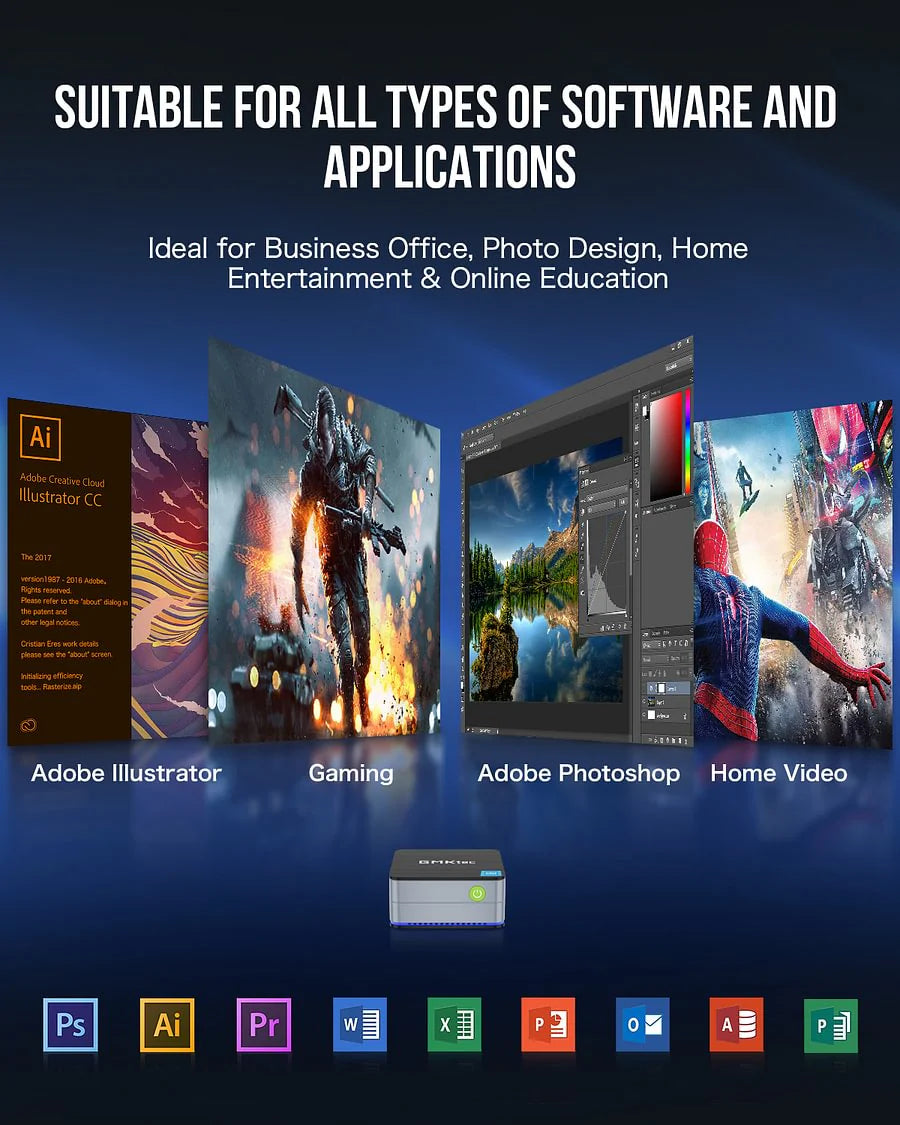 Alimentato da processori all'avanguardia per la massima potenza di calcolo. I nostri mini-PC offrono prestazioni a livello desktop in un formato compatto, perfetto per lavoro e intrattenimento.