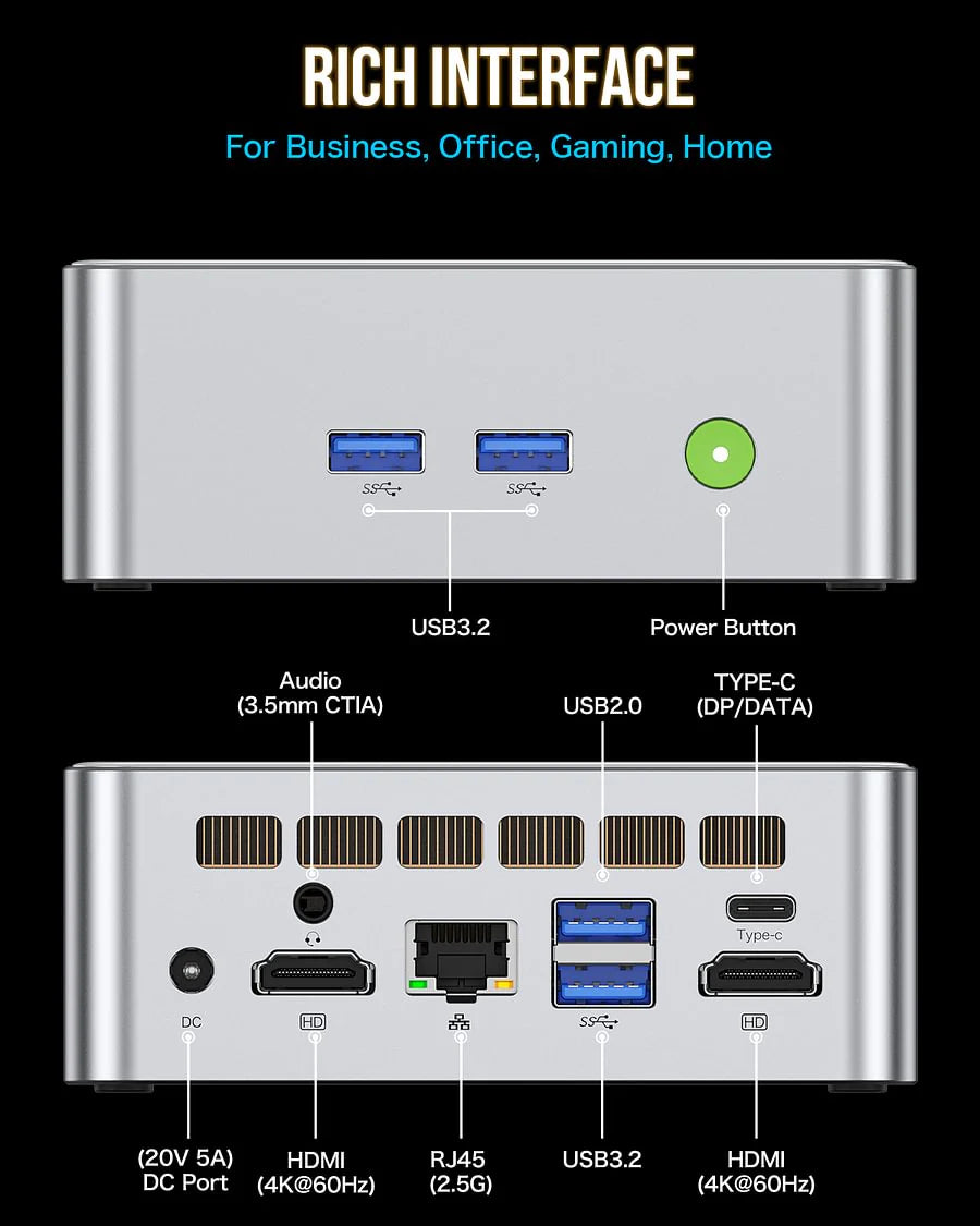 Alimentato da processori all'avanguardia per la massima potenza di calcolo. I nostri mini-PC offrono prestazioni a livello desktop in un formato compatto, perfetto per lavoro e intrattenimento.