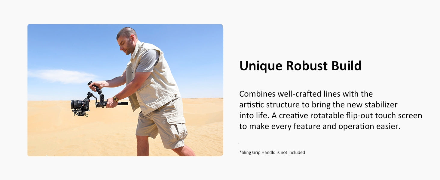 Modalità ritratto con un tocco per TikTok/Reels. Impugnatura ergonomica sling riduce l'affaticamento per riprese a bassa angolazione o a mano. Include piastra di rilascio rapido.