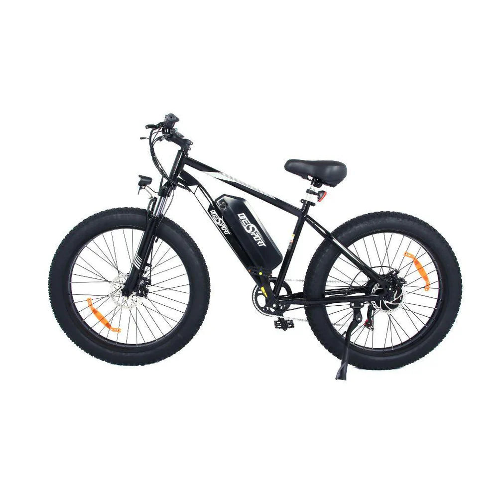 (3) Shimano a 7 velocità e pneumatici da 26" Fatbike: cambi precisi per ogni terreno | Pneumatici larghi 4 pollici per la massima stabilità | Escursione di 60 mm per una guida confortevole.