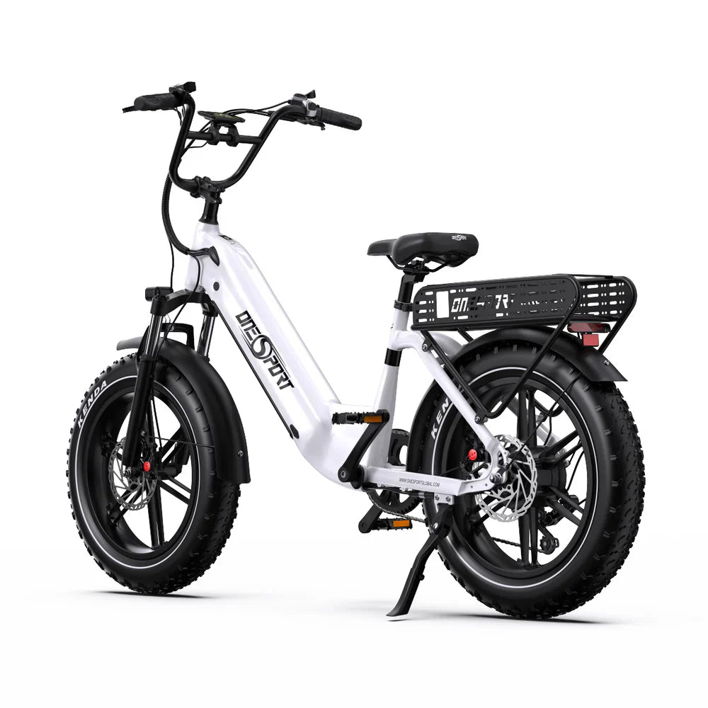 (2) Sicurezza premium e prestazioni in tutte le condizioni: freni a disco idraulici (anteriore/posteriore) con rotori da 180 mm – si ferma in modo sicuro sotto la pioggia o durante una frenata completa. Pneumatici Kenda da 20x4 pollici + forcella a sospensione per stabilità su ciottoli, neve o ghiaia. IPX4 resistente agli spruzzi e adatto per -10°C a 40°C – ideale per le stagioni tedesche.