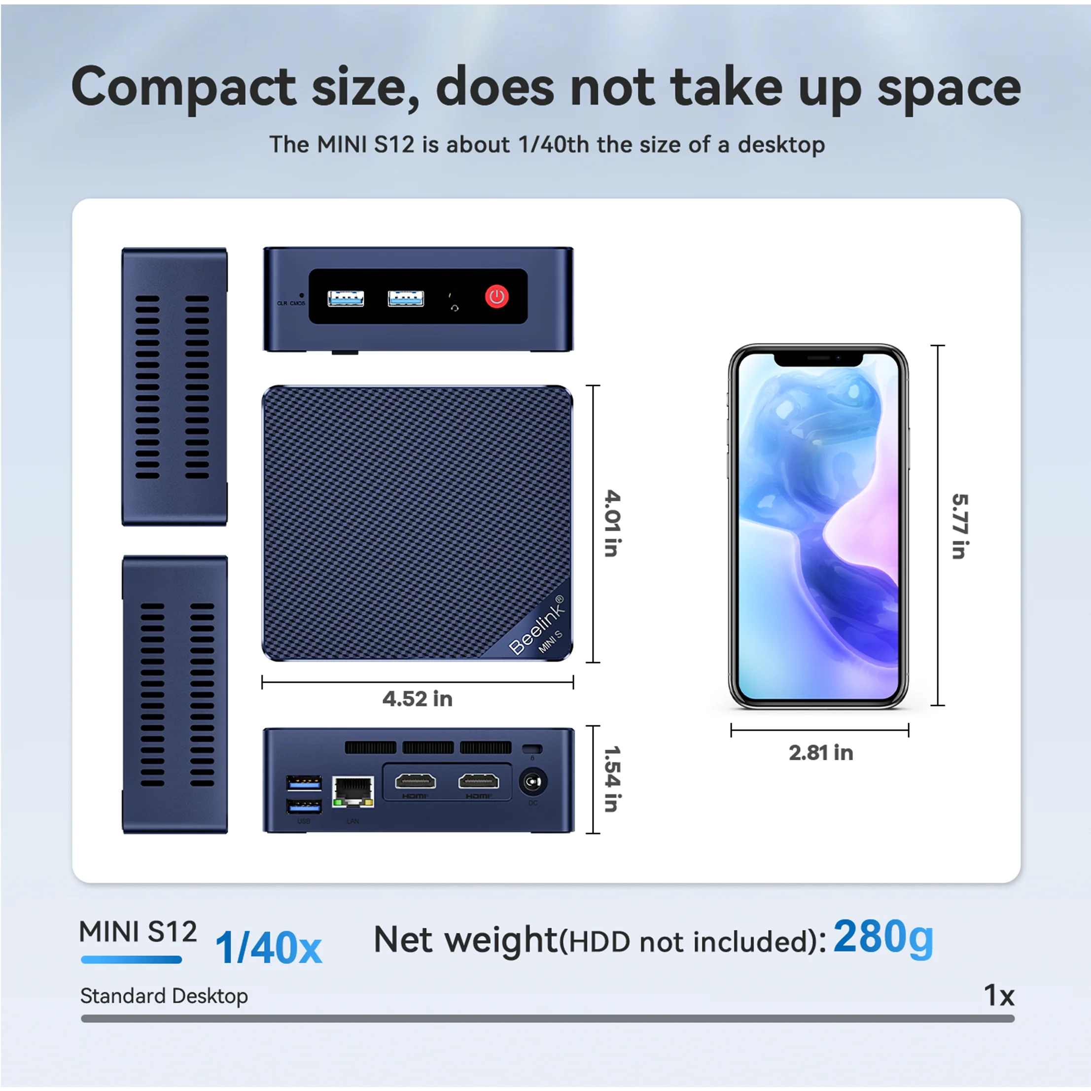 (1) Prestazioni Intel di 12ª Generazione: Il Mini S12 con Intel Alder Lake-N95 (4 core, 3.4GHz) offre il 35% di potenza in più rispetto ai modelli N5095/N5105. Perfetto per il multitasking e le applicazioni d'ufficio.