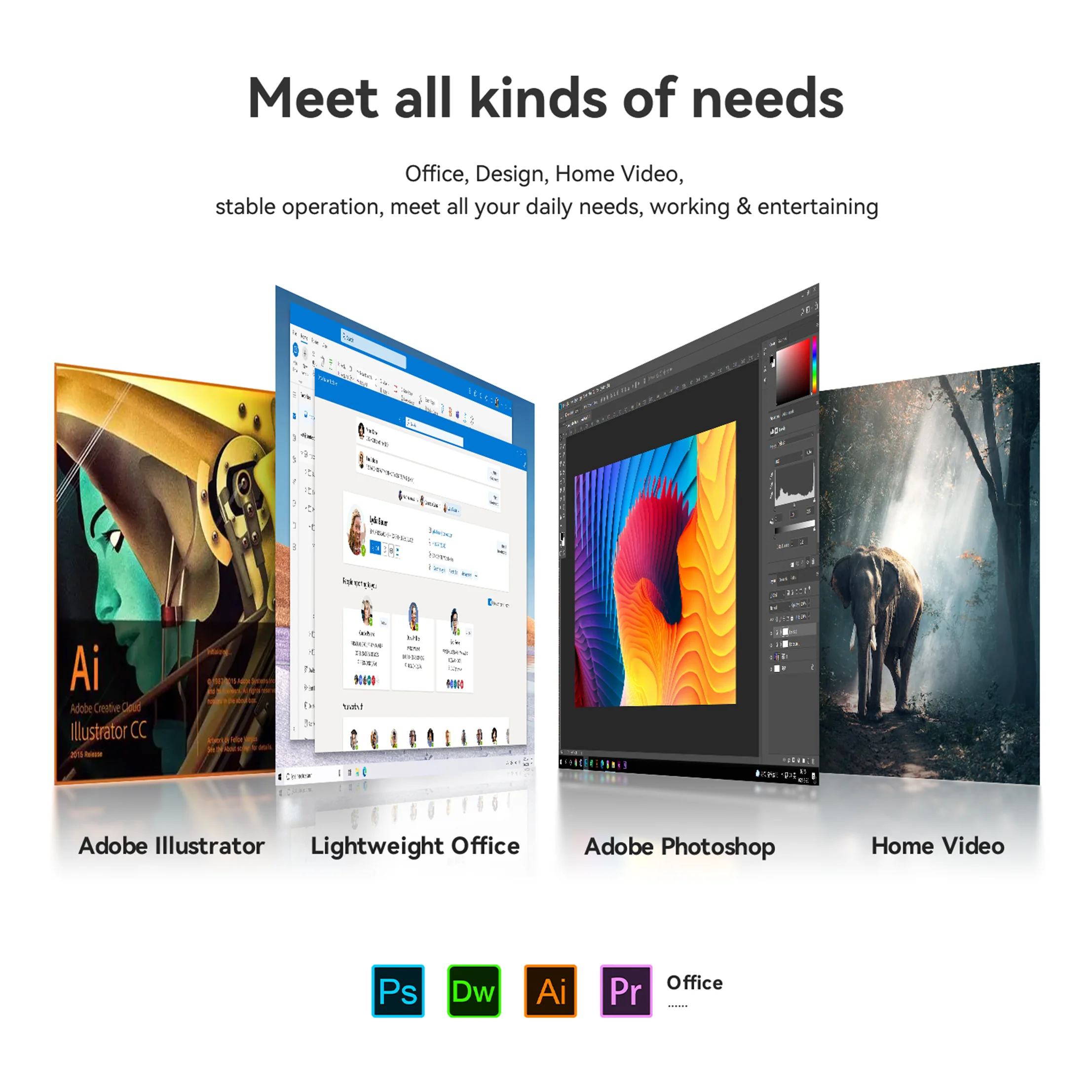 (4) WiFi 5 e Bluetooth 4.2: WiFi 5 dual-band (2.4G + 5.8G) per streaming senza ritardi. Bluetooth 4.2 collega mouse, tastiere e cuffie wireless.