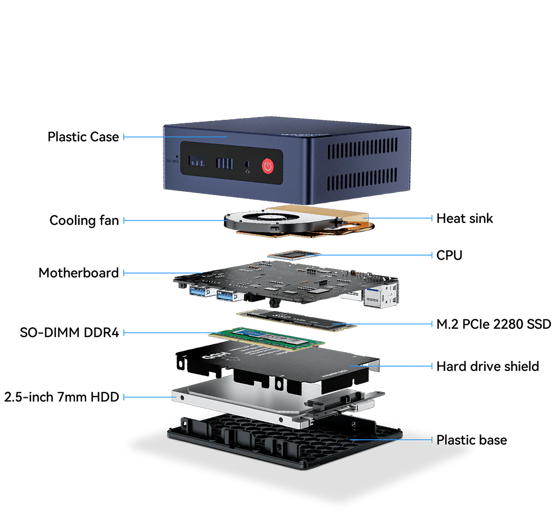 Alimentato da processori all'avanguardia per la massima potenza di calcolo. I nostri mini-PC offrono prestazioni a livello desktop in un formato compatto, perfetto per lavoro e intrattenimento.