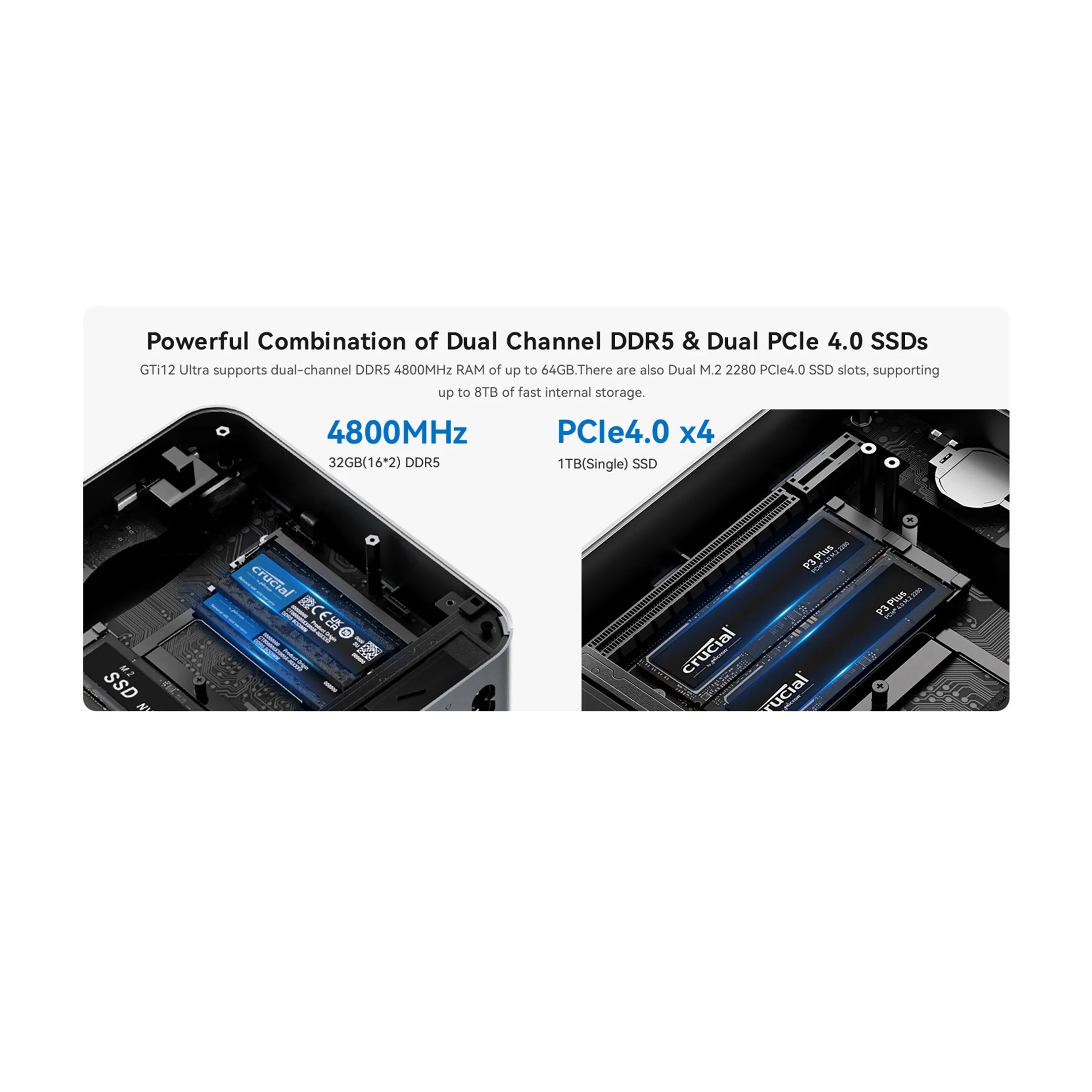 Alimentato da processori all'avanguardia per la massima potenza di calcolo. I nostri mini-PC offrono prestazioni a livello desktop in un formato compatto, perfetto per lavoro e intrattenimento.
