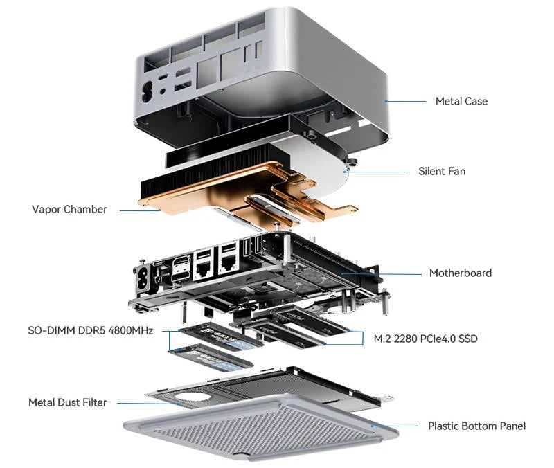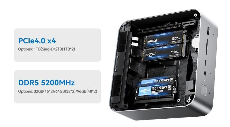 Alimentato da processori all'avanguardia per la massima potenza di calcolo. I nostri mini-PC offrono prestazioni a livello desktop in un formato compatto, perfetto per lavoro e intrattenimento.